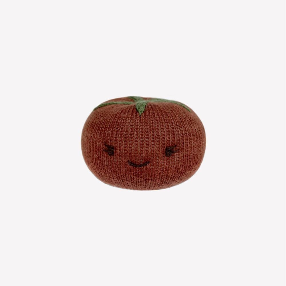 Tomatenrammelaar van Main Sauvage, geïnspireerd op schatten uit de tuin. Deze zachte groente is perfect voor kleine, nieuwsgierige handjes. Met zijn zachte gerinkel en pluche textuur stimuleert hij de eerste ontdekkingen van baby's. Hij is met de hand gebreid van 100% babyalpacawol en is even knuffelbaar als charmant.