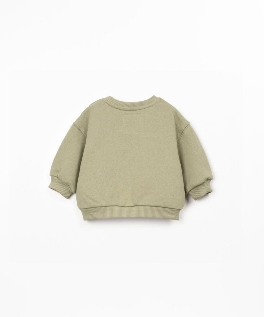 Sweater in khakigroen van Play Up. Dit sweatshirt heeft een heerlijk zachte gemoltoneerde binnenkant. Verder heeft de sweater een ronde halslijn, decoratieve naden vooraan en een schouderopening met knoopjes van kokosnoot. Hij bevat Re(Play)-garen dat afkomstig is van de recycling van Play Up's post-productie afval.
