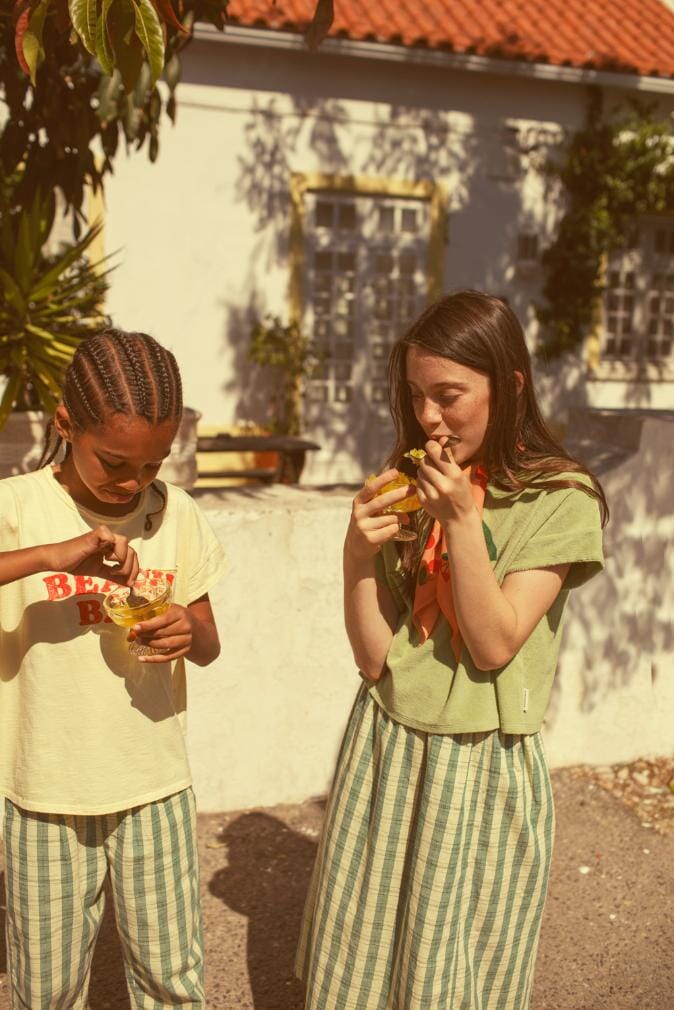Die portugiesische Marke Piupiuchick zelebriert das Spielen mit einem Augenzwinkern in Richtung Nachhaltigkeit! Die gesamte Kollektion wird lokal aus natürlichen Materialien hergestellt, die Oberflächen sind weich und die Details umfassen Slogans, inspirierende Worte, Peter-Pan-Kragen und Fransen, alles in den fröhlichsten Farben und trendigen Mustern.