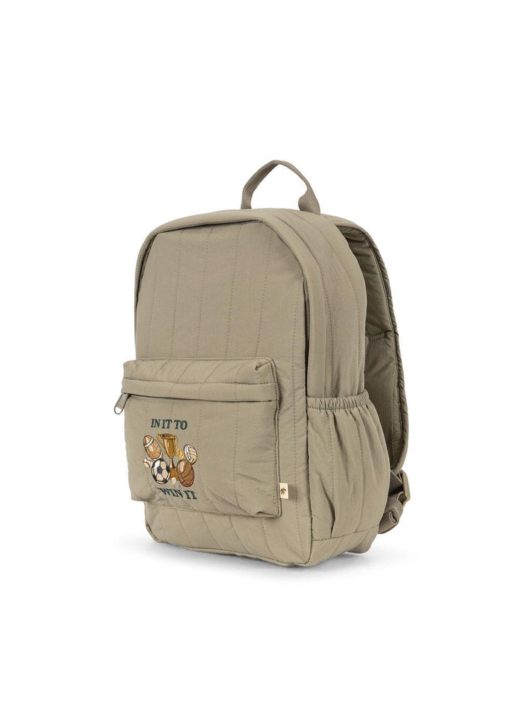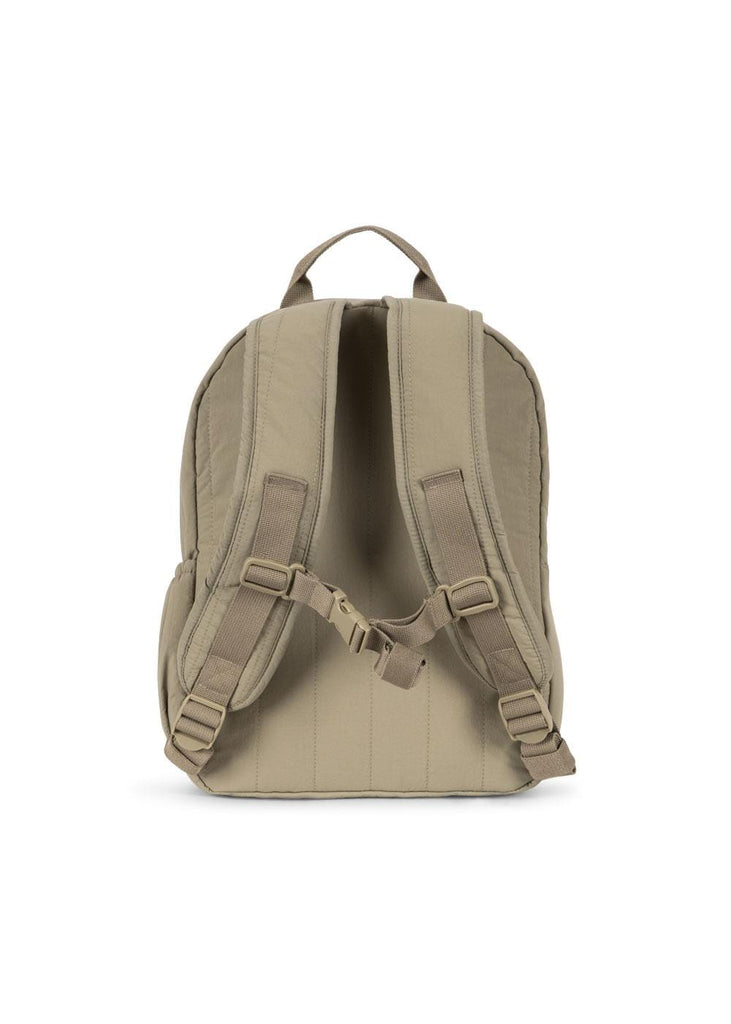 Rugzak Juno in de kleur Laurel oak van Konges Sløjd. Dit is een zachte en lichtgewicht rugzak met een praktisch flessenvak, een voorvak en een borstband voor ondersteuning van de rug.
