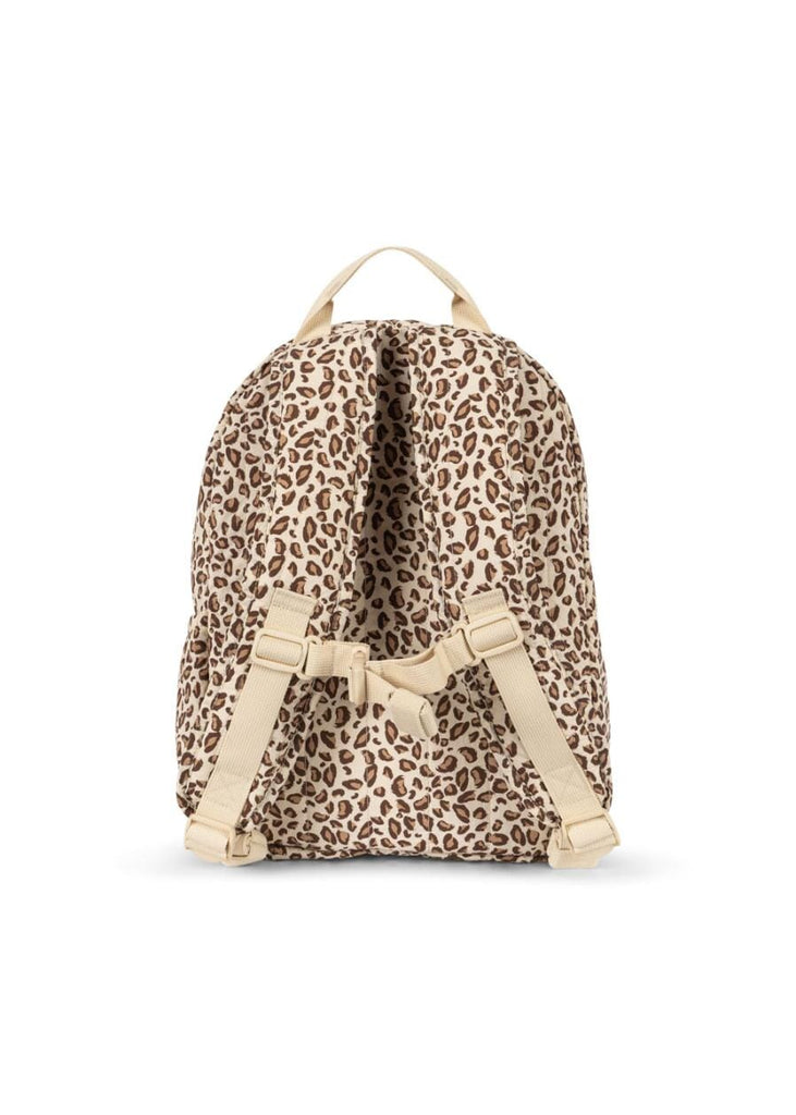 Rugzak Juno in de kleur Leo van Konges Sløjd. Dit is een zachte en lichtgewicht rugzak met een praktisch flessenvak, een voorvak en een borstband voor ondersteuning van de rug. De rugzak heeft een prachtige hartjesprint met pailletten.