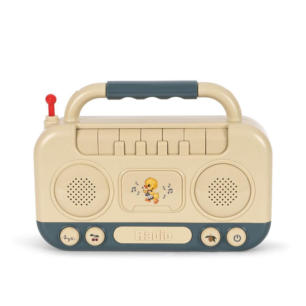 Baby boombox van Konges Sløjd. Deze babyradio is ontworpen om kleine handjes en nieuwsgierige geesten te prikkelen.
