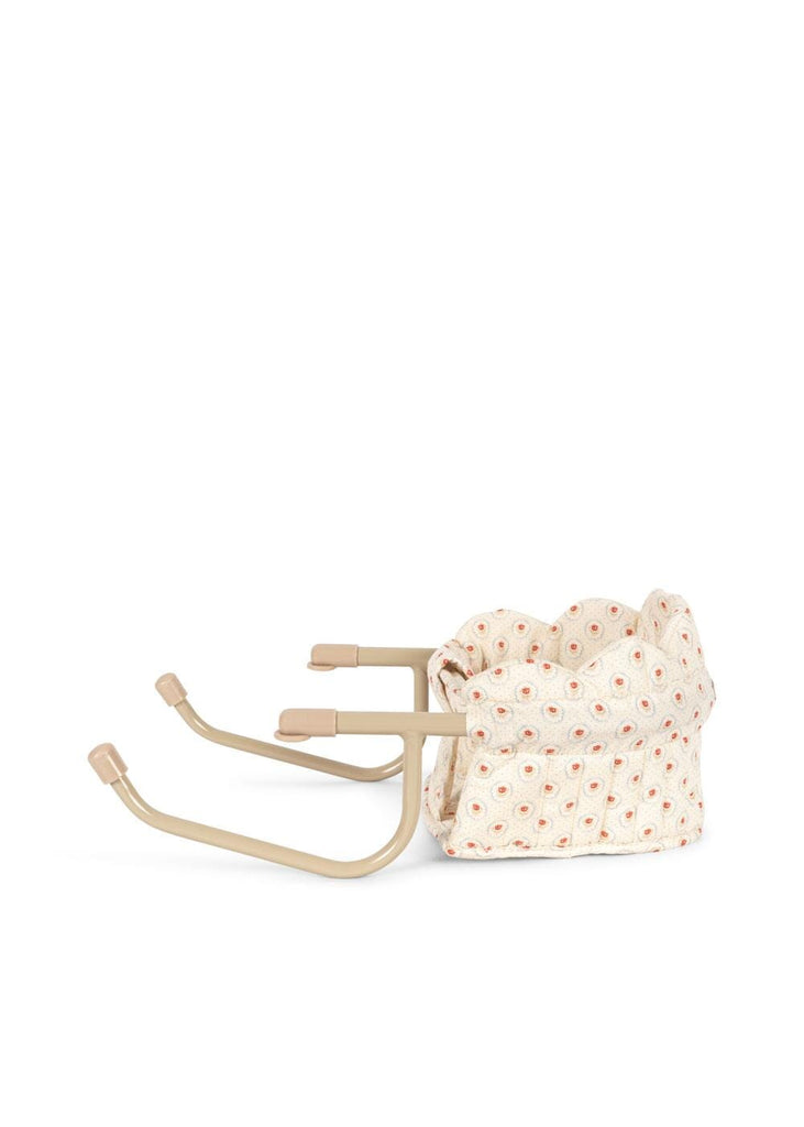 Poppentafelzitje in de print Mirage van Konges Sløjd. Gemaakt van gewatteerde, katoenen stof met geschulpte rand en met een ijzeren frame.