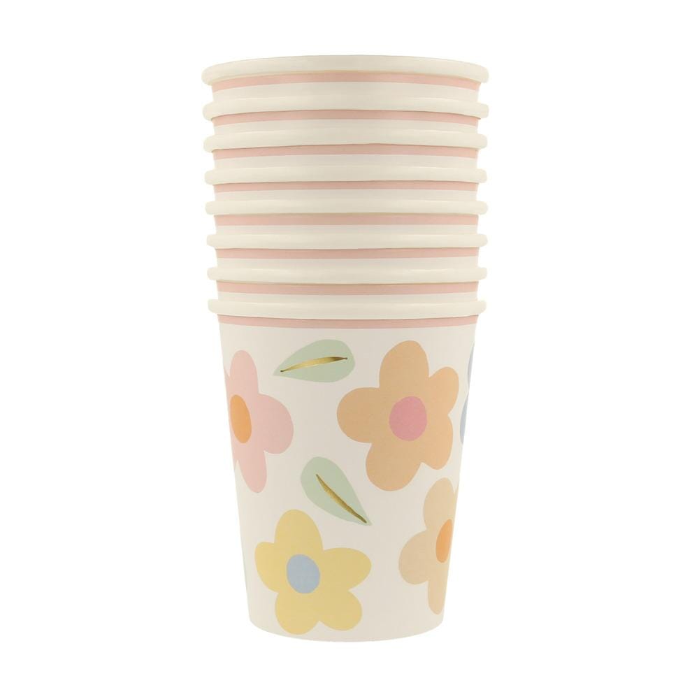 Bekertjes in de Happy Flowers variant van Meri Meri. De bloemenprints uit de jaren 90 zijn weer helemaal in de mode - nu gedurfder, mooier en beter! De mix van pastelkleuren maakt deze bekers echt bijzonder. Perfect voor verjaardagen, tuinfeesten, picknicks of waar je ook maar een fantastische bloemenprint wilt.
