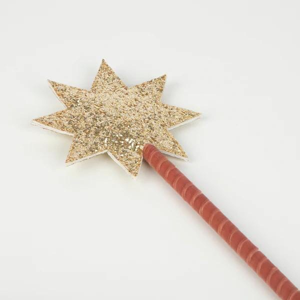 Fluwelen tovenaarskostuum in de kleur roze van Meri Meri. De combinatie van luxe roze fluweel met zilveren glittersterren en manen maakt dit kostuum heel speciaal. De toverstok is bedekt met een zilveren glitterstof ster, en heeft een roze fluwelen lint om het houten handvat gewonden. Je hoeft alleen maar de cape om te slaan, de hoed op te zetten en met de toverstaf met sterren te zwaaien om er in een paar seconden als een tovenaar uit te zien. Het is perfect om te dragen naar feestjes of voor fantasierijk spel.