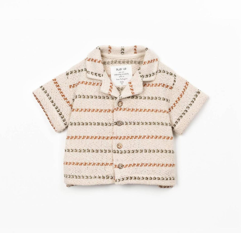 Hemd uit gebreide, katoenen stof van Play Up. Dit hippe hemdje heeft een kraag met revers, korte mouwen en een sluiting met knoopjes van kokosnoot. Het is heerlijk luchtig en zacht en bevat Re(Play)-garen dat afkomstig is van de recycling van Play Up's post-productie afval.