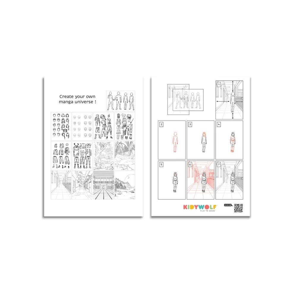 Kidydraw Pro tekentablet in de kleur Blauw van Kidywolf. Met K-DRAW-PRO Manga bedenken kinderen hun eigen helden, geïnspireerd door de mangawereld. Dankzij een slim systeem kallkeren ze gezichten, kapsels, outfits en gezichtsuitdrukkingen eindeloos – meer dan 1000 combinaties zijn mogelijk. Het lichtbord is dubbelzijdig en biedt ruimte voor vrije, leuke en creatieve expressie. Een waardevolle activiteit om hun stijl te ontwikkelen, hun fantasie te prikkelen en zich te vermaken zonder schermen.