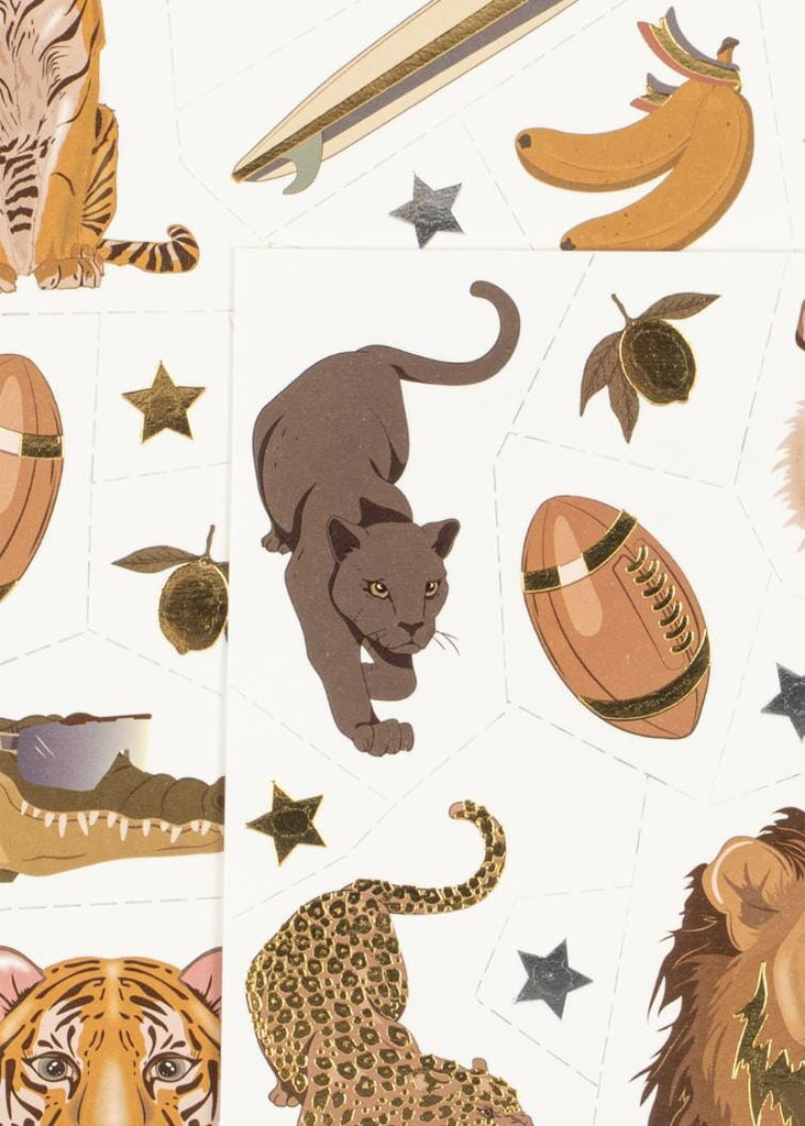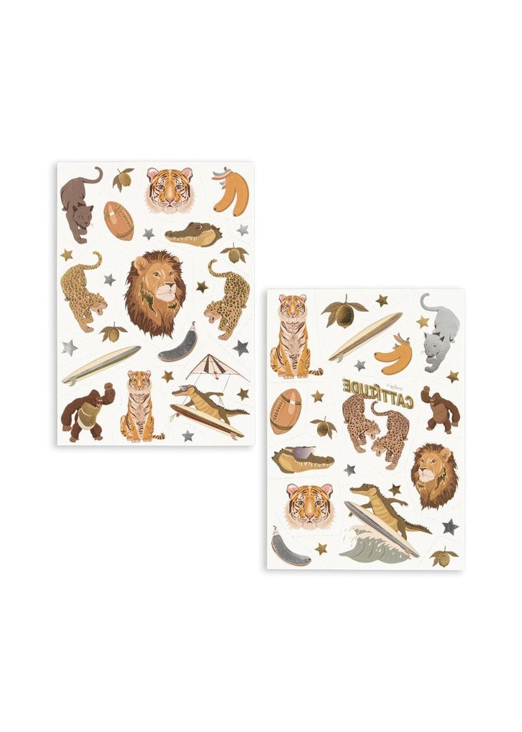 Tattooset voor dierenliefhebbers van Konges Sløjd. De vellen bevatten meer dan 30 tijdelijke tatoeages met leeuwen, panters en andere stoere ontwerpen.