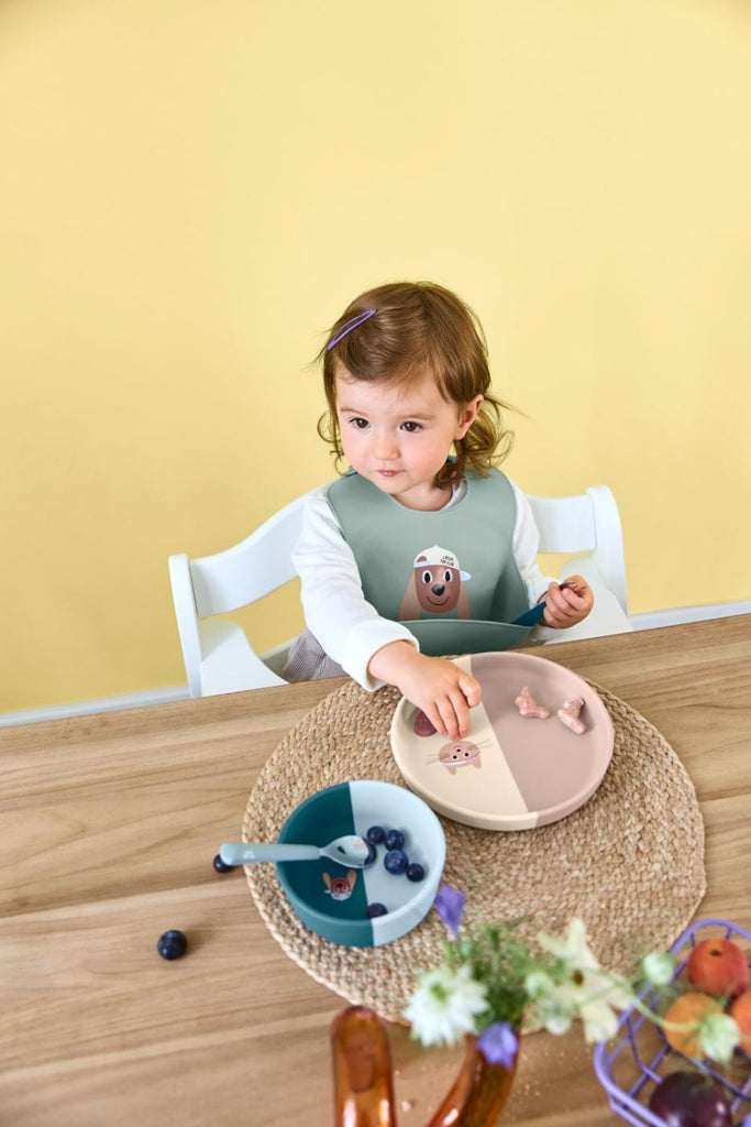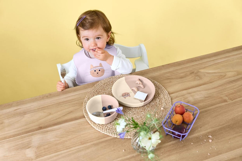 Siliconen bord in de kleur Tiny Team Cat van Lässig. Sportief plezier met het Tiny Team! Sportieve dieren zoals honden en katten worden kleine vriendjes voor de allerkleinsten. Het praktische LÄSSIG siliconen bord maakt de eerste pogingen tot zelfstandig eten kinderspel met zijn speelse motieven en fantastische kleuren. Het bord is BPA-vrij, breukvast, vaatwasserbestendig en ideaal voor kinderen vanaf 6 maanden.